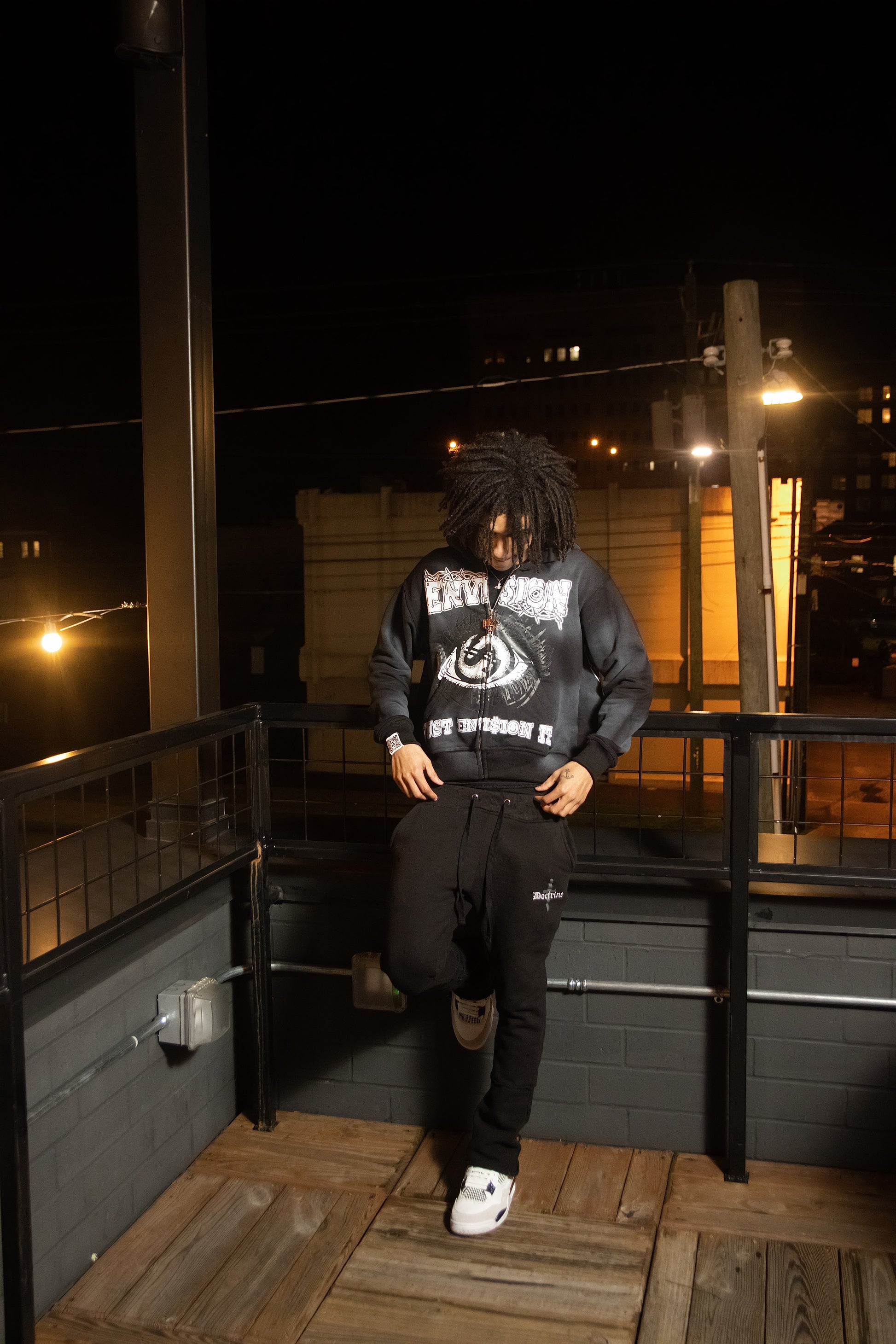 Designed for those who move with purpose, this jacket blends streetwear edge with elevated details. The light sun-fade wash gives it a naturally worn-in look, while the custom satin-lined hood adds a smooth, luxe feel. A one-of-a-kind Envision zipper enhances the design, making every piece unique. A scannable QR code links directly to the brand’s Instagram on the right wrist, connecting style with community.